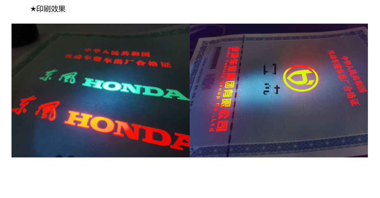 证券纸:一般纸张在紫外線(xiàn)照射下都显有(yǒu)荧光,印制钞票有(yǒu)价证券或重要文(wén)书的纸均采用(yòng)无荧光的纸。护照和一些票证也采用(yòng)无荧光纸,以便于显露附加的暗记和荧光图文(wén)。
